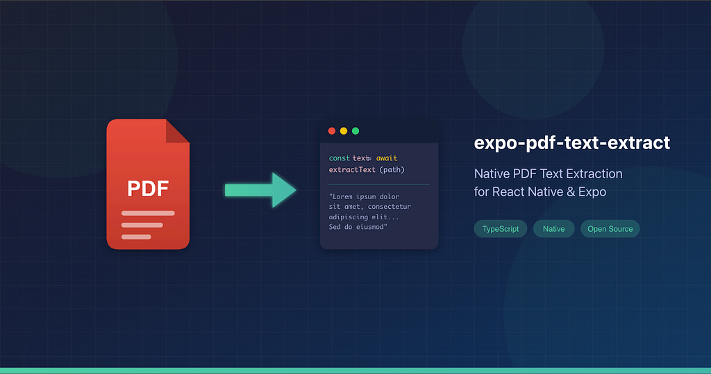 Meet expo-pdf-text-extract — a native Expo module that does exactly what the name says: extracts text from PDF files. Fast, simple, and open-source.